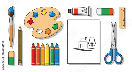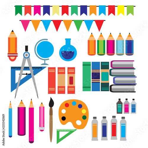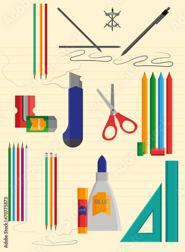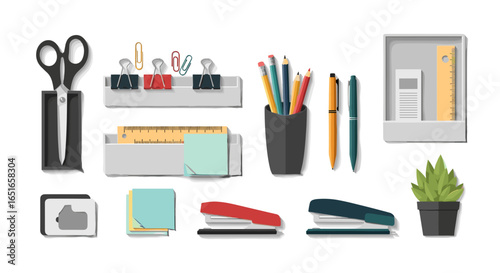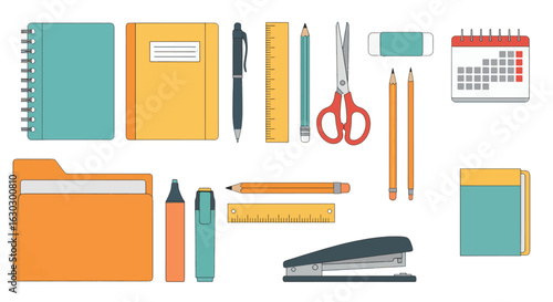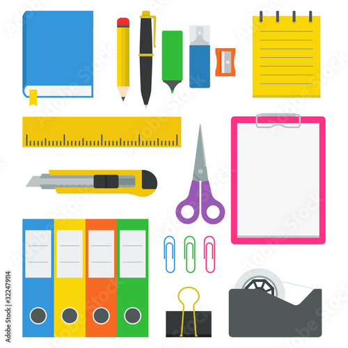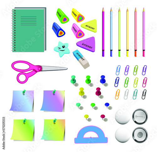 Vektorové realistické šablony ikona set. Školní a kancelářské potřeby.