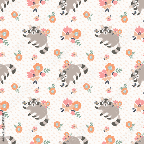 Vektorové bezešvé vzor s roztomilé milující mývalové a zajíčci. Šťastné romantické zvířata páry pozadí, tapety, tkanina, balicí papír.