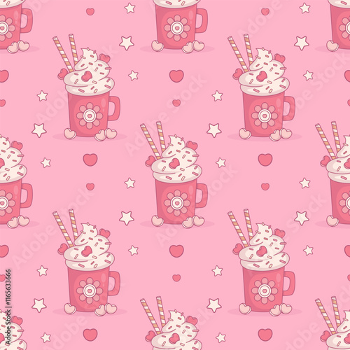 Vektorové bezešvé vzor s roztomilý pár koček v lásce. Šťastný romantický objímání koťata se srdcem pozadí, tapety, tkaniny, balicí papír.