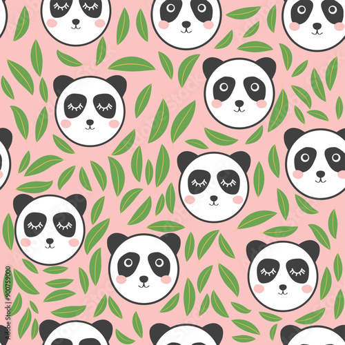 Vektorové bezešvé vzor s roztomilé pandy jíst bambusové listy a koblihy. Funny jíst zvířata pozadí, tapety, tkaniny, balicí papír.