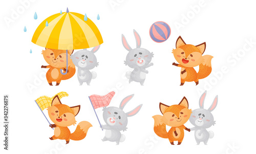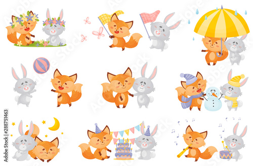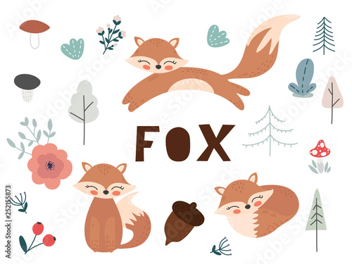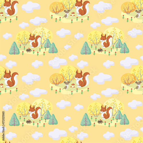 Vektorové bezešvé vzor s roztomilé lišky létání na obloze. Legrační zvířata pozadí, tapety, tkanina, balicí papír.