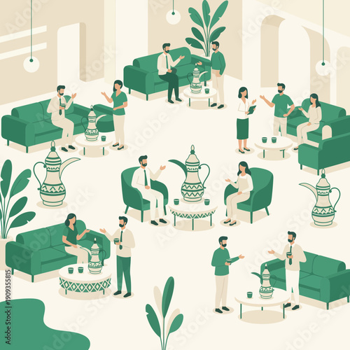 Vektorové bezešvé vzor s roztomilými mývaly, kteří odpočívají při pití kávy, sedí v józe a leží. Legrační mýval pozadí, tapety, tkanina, balicí papír