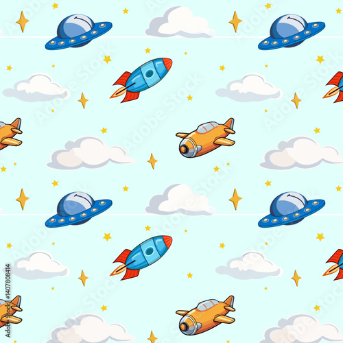 Vektorové bezešvé vzor s roztomilé holčičky, mýtické bytosti a pohádkové postavy s kouzelnou hůlkou létání na obloze. Dětské kouzelnice pozadí, tapety, tkanina, balicí papír.