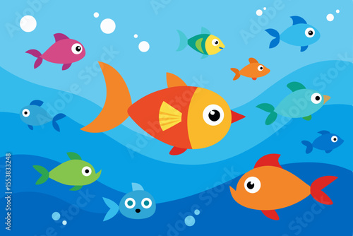 Vektorové bezešvé vzor s roztomilé mořské panny a mořských živočichů. Krásné plavecké dívky s rybami a mořským koníkem. Dětská mořská panna pozadí, tapety, tkanina, balicí papír.