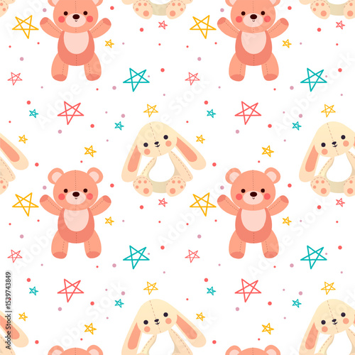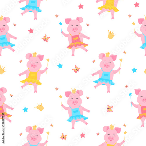 Vektorové bezešvé vzor s roztomilé holčičky, mýtické bytosti a pohádkové postavy s křídly drží květinu a létání. Dětské pohádkové pozadí, tapety, látky, balicí papír.
