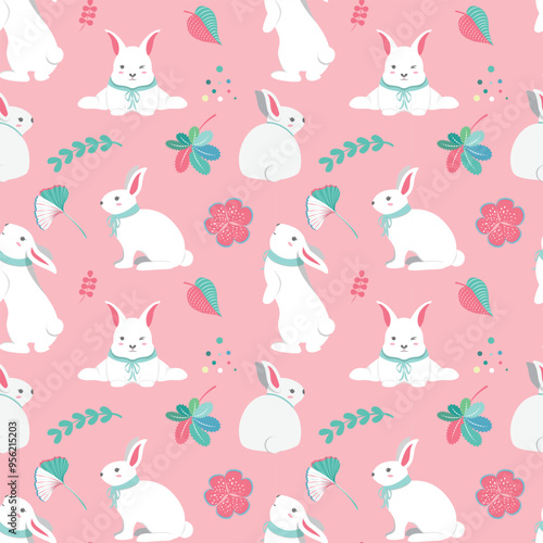 Vektorové bezešvé vzor s roztomilé kreslené kočky s jarními květinami a ptáky. Jarní kočky pozadí, tapety, tkanina, balicí papír.