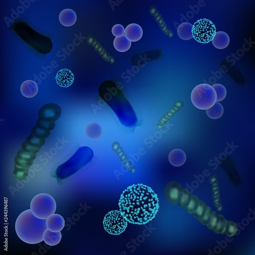 Vektorové bezešvé vzor s různými tvarovými a barevnými viry, bakteriemi a choroboplodnými zárodky.