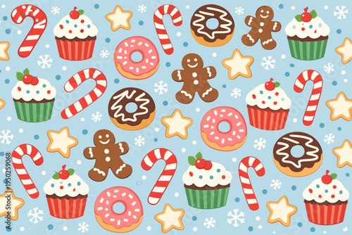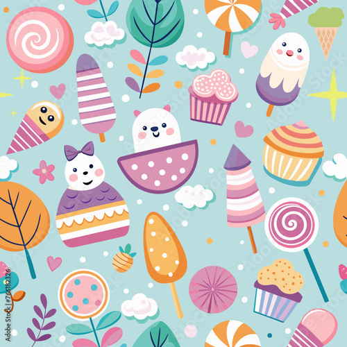 Vektorové bezešvé vzor s sladkosti, lízátka, candy hole a sladké domy. Sladké cukroví pozadí, tapety, tkaniny, balicí papír.