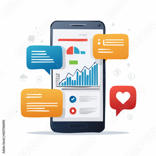 Vektorová sada 3D bublin, e-mailových dopisů a obchodních ikon. Zpráva, poštovní schránka mobilního telefonu, oznámení chatu, ikony sociálních médií. 3D render prvky.