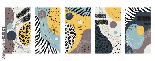 Vektorová sada abstraktní zvířecí kůže pozadí pro sociální média příběhy designu, nástěnné dekorace vzor, moderní plakát, tisky. Leopard, zebra, tygr abstraktní pozadí ilustrace.