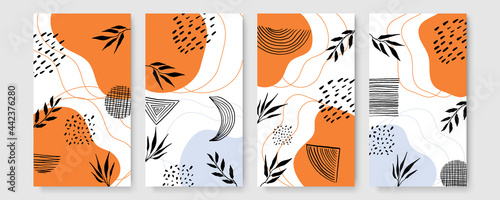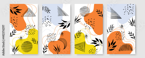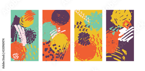 Vektorová sada abstraktních ručně malovaných pozadí pro návrh příběhů sociálních médií, vzor dekorace stěn, moderní plakát, tisky. Abstraktní pozadí ilustrace.