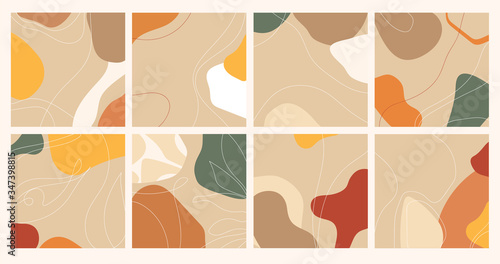 Vektorová sada abstraktních ručně malovaných pozadí pro návrh příběhů sociálních médií, vzor dekorace stěn, moderní plakát, tisky. Abstraktní pozadí ilustrace.
