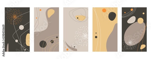 Vektorová sada abstraktních ručně malovaných pozadí pro návrh příběhů sociálních médií, vzor dekorace stěn, moderní plakát, tisky. Abstraktní pozadí ilustrace.