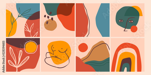 Vektorová sada abstraktních ručně malovaných pozadí pro návrh příběhů sociálních médií, vzor dekorace stěn, moderní plakát, tisky. Abstraktní pozadí ilustrace.