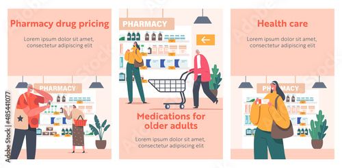 Vektorová sada letištních koncepčních bannerů v plochém stylu. Koupit vstupenky, Duty Free a kavárna na letištních designových prvků. Lidé si kupují lístky, jídlo a odpočinek. Cestujte letecky.