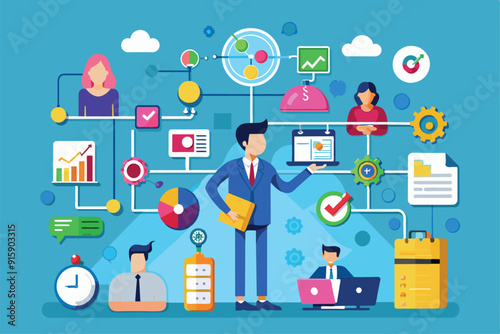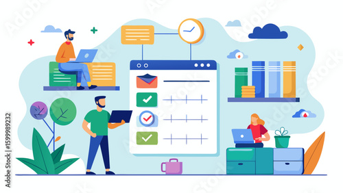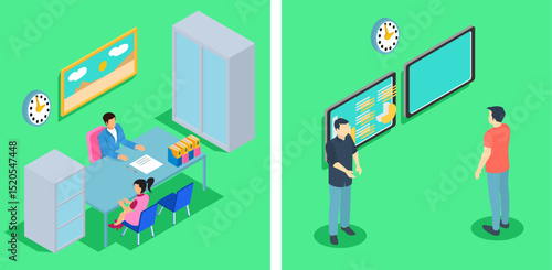 Vektorová ilustrace počítadla letenek, agenta rampy a cestujících. Letištní lidé symboly, ikony izolované na bílém pozadí. Plochý design.