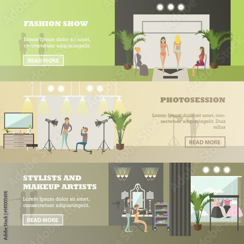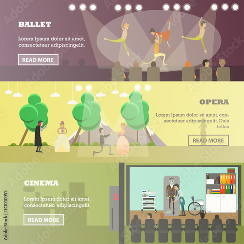 Vektorová sada uměleckých a řemeslných horizontálních bannerů. Umělecké kurzy ve školách, Taneční škola a koncept interiérového designu v plochém stylu.