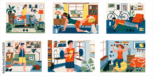 Vektorová sada plakátů holičství, kadeřnictví a tetovacího studia, bannery. Ploché designové prvky.