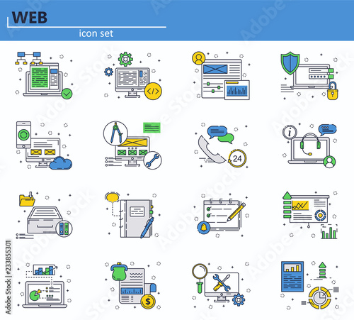 Vektorová sada obchodních a kancelářských ikon ve stylu tenké čáry. Online chat a zákaznická podpora. Webové rozhraní a ikona mobilní webové aplikace. Obrys design ilustrace