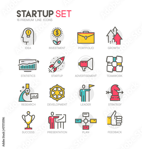 Vektorová sada obchodních, finančních a kybernetických bezpečnostních ikon ve stylu tenké čáry. Webové rozhraní a ikona mobilní webové aplikace. Obrázek návrhu obrysu