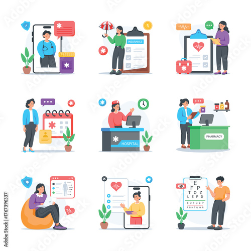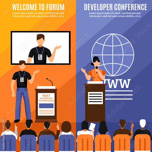 Vektorová sada čtvercových plakátů podnikatelů. Konference, prezentace, dohoda a smlouva plochý styl designové prvky.