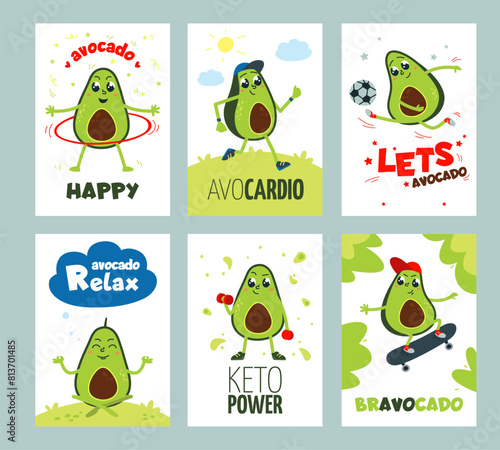 Vektorová sada karet s roztomilými Kaktusy sukulentní rostlinou a inspirativními citacemi. Kvetoucí kreslené kaktusy s legračními tvářemi v květináčích na barevném pozadí s tečkami, srdíčky, hvězdami, vlajkami na párty.