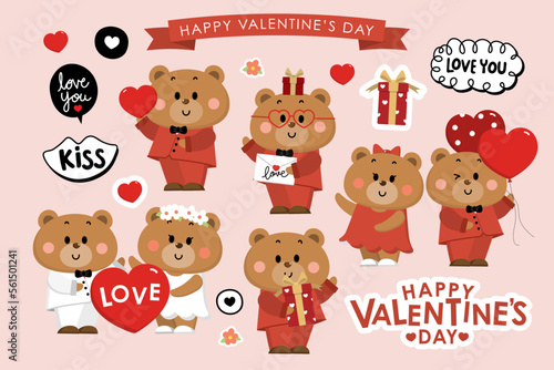 Vektorová sada valentýnských karet s roztomilými páry zvířat a inspirativními citáty. Šťastné milující zajíčci, lišky, mývalové, veverky, sovy a medvědi objímání, drželi se za ruce, dávat květiny.