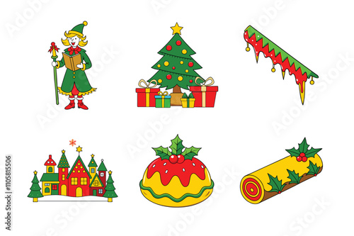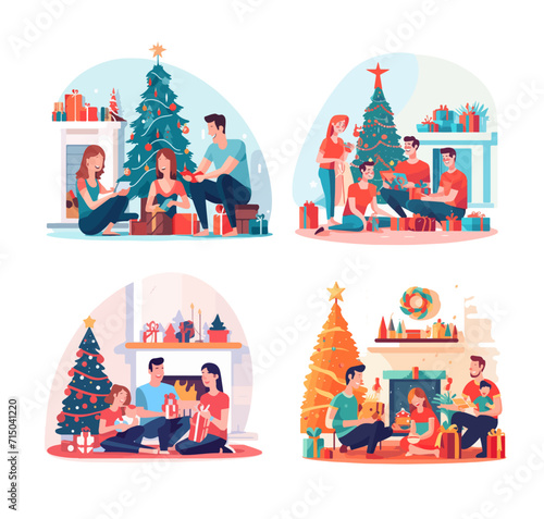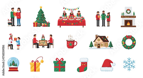 Vektorová sada vánočních a silvestrovských oslav plakátů, bannerů. Santa Claus, přání, dárek, Vánoční čas designové prvky v plochém stylu.