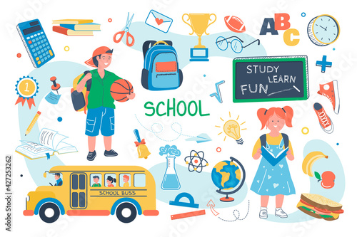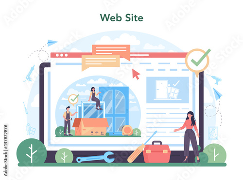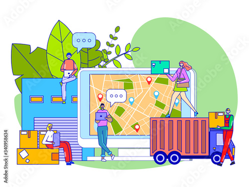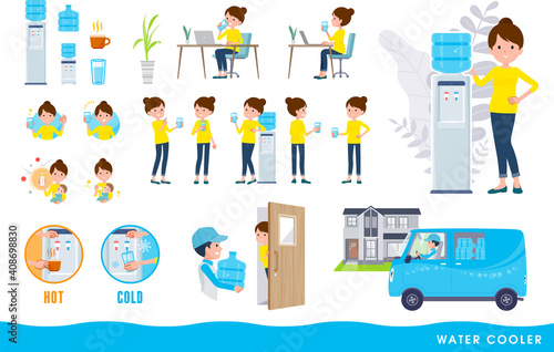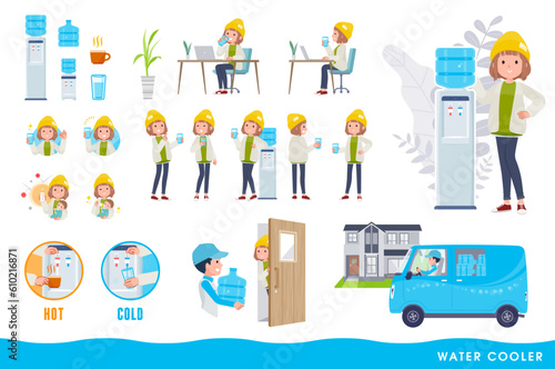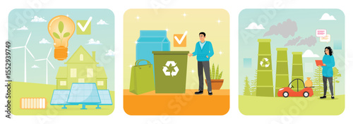 Vektorové ilustrace profesionální čištění dámy mytí okna, nábytek, čistič muž s vozíkem přišel autem. Čištění lidí symboly, ikony izolované na bílém pozadí. Plochý design.