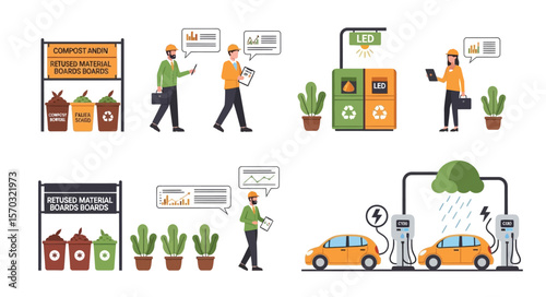 Vektorová sada čistících plakátů, bannerů. Auto, Mini vysavač, mytí oken, mytí podlahových plochých designových prvků.