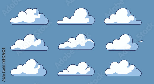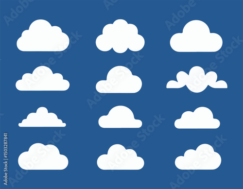 Vektorová sada cloudových ikon ve stylu papírového umění. Cloudové značky izolované na pozadí. Origami papír řez design