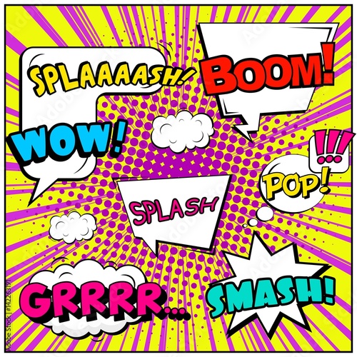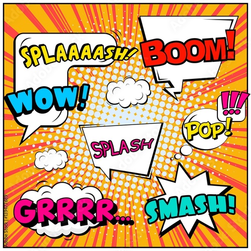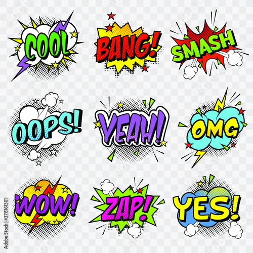 Vektorová sada komiksového textu. Ilustrace ve stylu pop art. Komické bubliny pro různé emoce a zvukové efekty