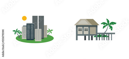 Vektorová sada stavebních interiérových konceptů plakátů, bannerů. Staveniště a stroje, opravy interiérových prvků domu v plochém stylu.