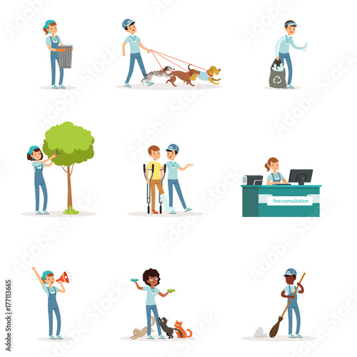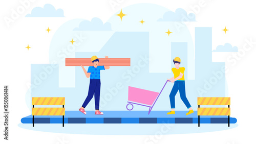 Vektorová sada stavebních dělníků izolovaných na bílém pozadí. Lidé pracující na staveništi, renovace bytu. Ploché designové prvky, ikony.