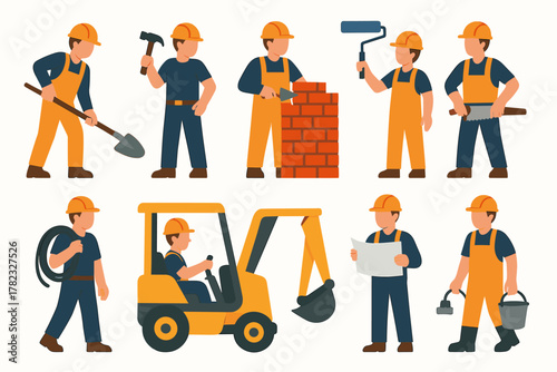 Vektorová sada znaků delivery man izolovaných na bílém pozadí. Logistické a dopravní ikony. Ilustrace v designu plochého stylu. Lidé pracující ve skladech a přepravních produktech.