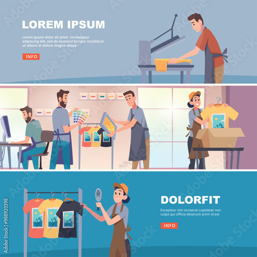 Vektorová sada továrních horizontálních bannerů. Pracovní kovář a soustružník, výroba konstrukčních prvků automobilových dílů v plochém stylu.
