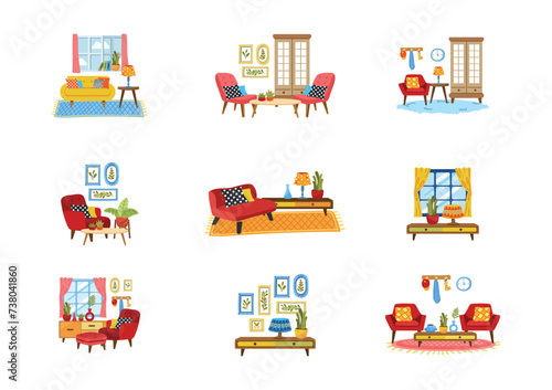 Vektorová sada plakátů family concept v plochém stylu. Babička, dědeček, matka a otec designové prvky.