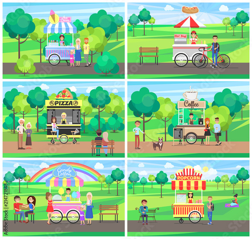 Vektorová sada požárních plakátů, bannerů. Hasiči hasili požár v lese, v městském dvoupatrovém domě a v chatovém domě. Ploché designové prvky.