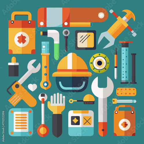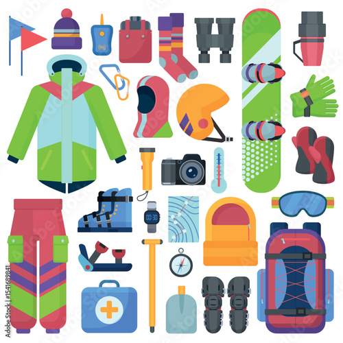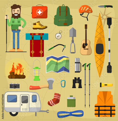 Vektorová sada ikon rybářského vybavení izolovaných na bílém pozadí. Ploché designové prvky.