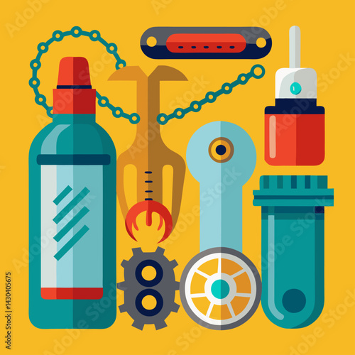 Vektorová sada baterek v plochém stylu. Designové prvky a ikony izolované na bílém pozadí. Světlomet, ruční lampa, pochodeň.
