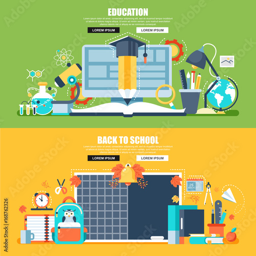 Vektorová sada horizontálních bannerů domu. Výstavba garáží, útulné kuchyně a ložnice nábytek plochý styl designových prvků.