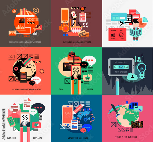 Vektorová sada vyšetřovacích plakátů. Odposlechy, vyšetřování, Psí detektivka a vyhlížející ploché designové prvky.