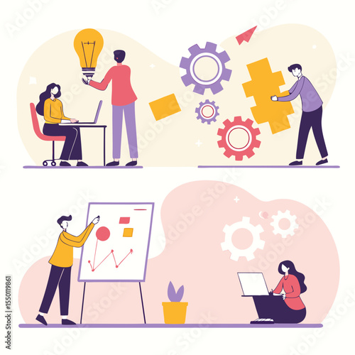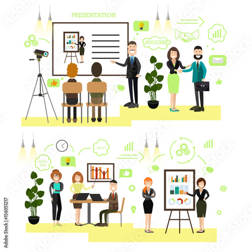 Vektorová sada soudních scén s právníky, kteří vyslýchají svědka, prokazují jeho nevinnost klienta, žena nahrává soudní jednání. Law court lidé ploché symboly, ikony izolované na bílém pozadí.