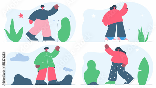 Vektorová sada bojových umění. Kendo, kudo, aikido a kickbox. Bojovníci ve sportovních pozicích.Plochý design.