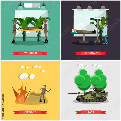 Vektorová sada plakátů v mateřské nemocnici v plochém stylu. Narození, Mateřství, těhotné a gynekolog plochý styl designové prvky.