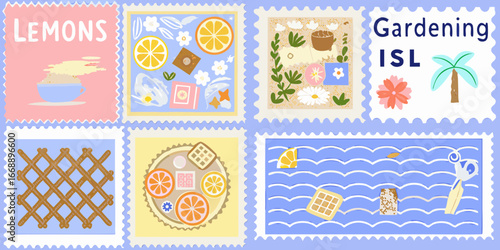 Vektorová kolekce veselých Vánoc a Šťastný Nový rok 2017 designové prvky s prázdninovými symboly. Sada pohlednic, známek.