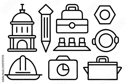 Vektorové sada muzea izolované ikony. Černobílé muzejní symboly a designové prvky. Umění, socha, budova muzea, lístek.