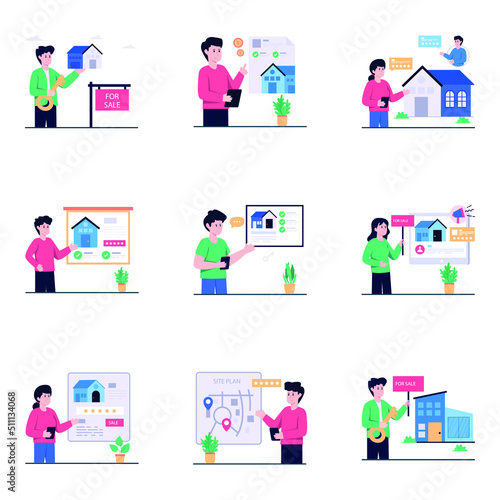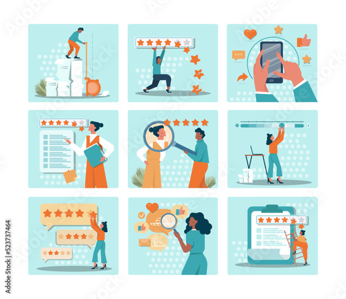 Vektorová sada kancelářských interiérových bannerů v plochém stylu. Podnikatelé a administrativní pracovníci. Interiér kanceláře.