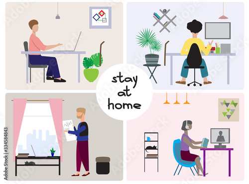 Vektorová sada kancelářských interiérových bannerů v plochém stylu. Podnikatelé a administrativní pracovníci. Firemní recepce