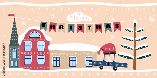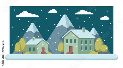 Vektorová sada zimní Panoráma města s kluzištěm, horskou krajinou a kavárnou na horském pozadí. Zimní příroda a místa pro zimní sporty a rekreaci koncept designové prvky v plochém stylu